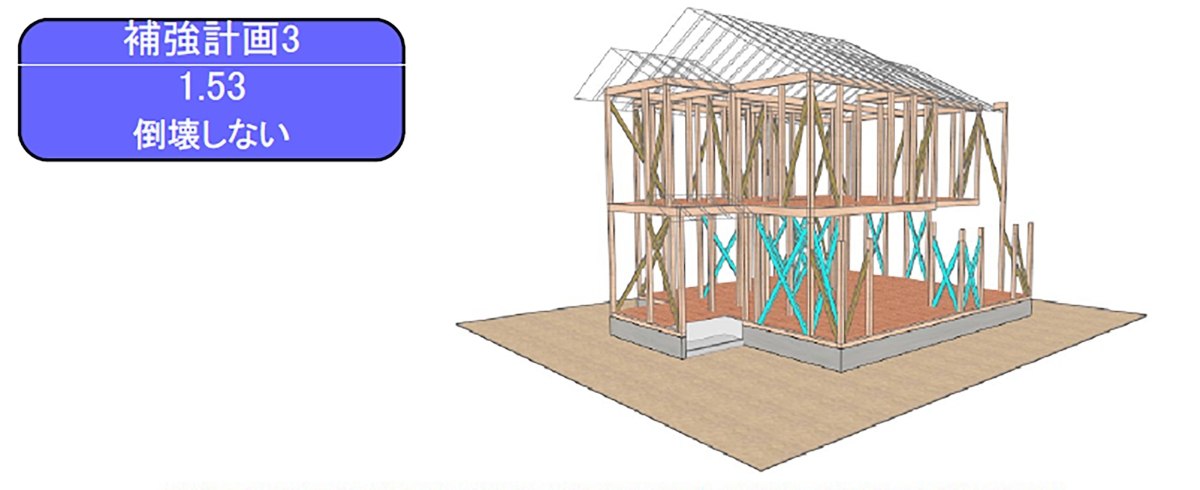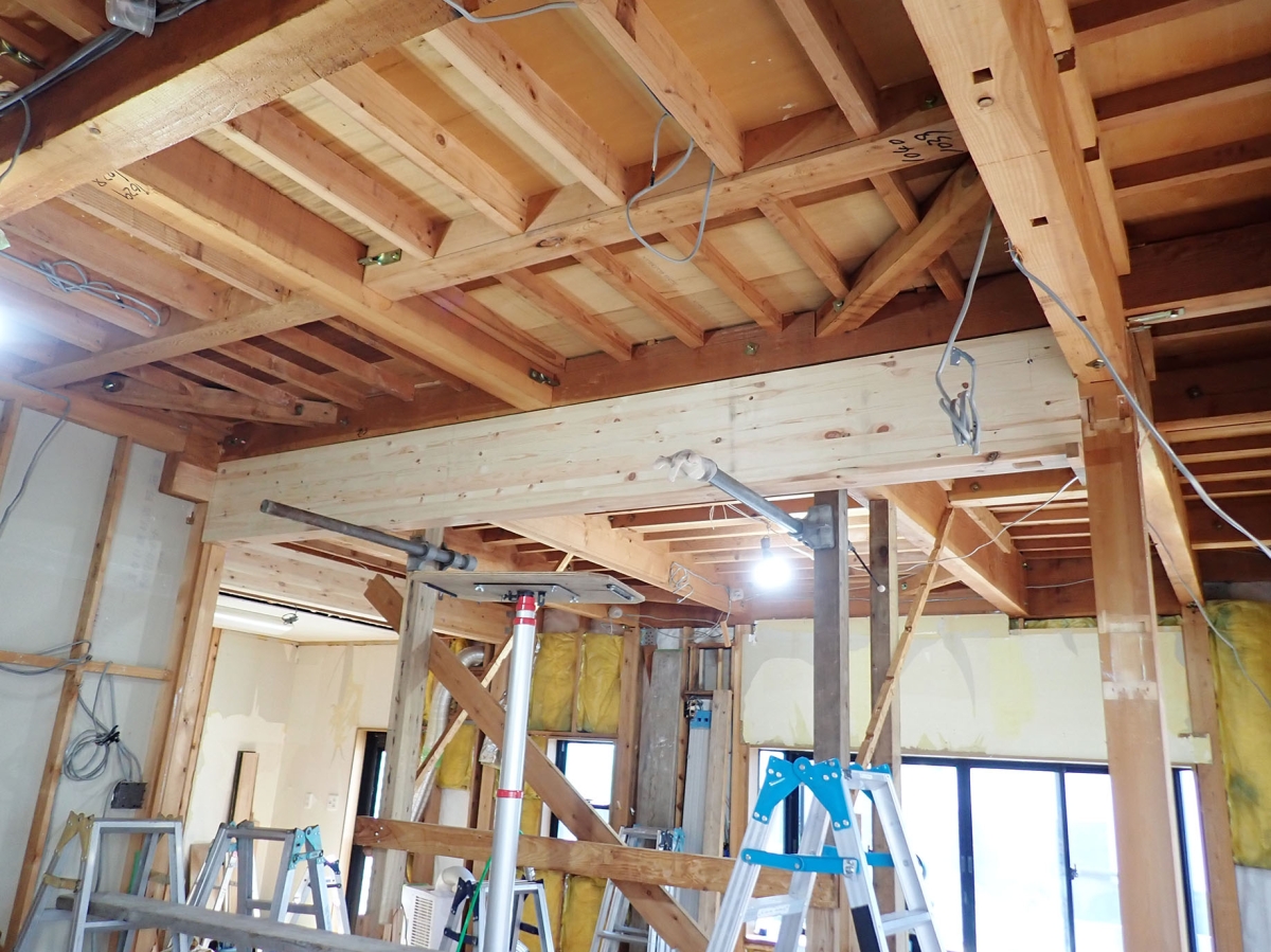 間仕切り壁の解体を伴うご希望だったため、まず耐震診断を実施し、結果に基づいた補強計画のもと耐震補強工事も行いました。